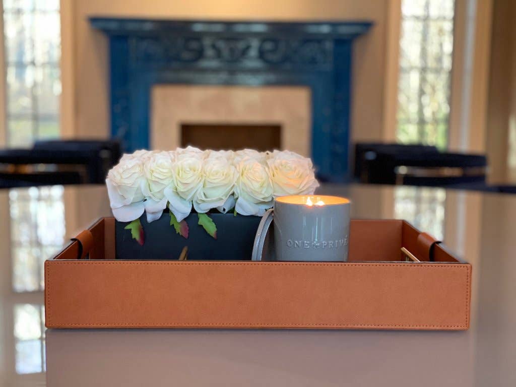 Elevate your entertaining experience with the exquisite Cooper Leather Tray, an exclusive One Preevay Luxury Home Furnishing and Decor.